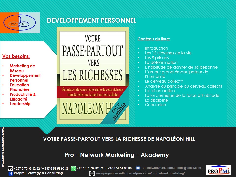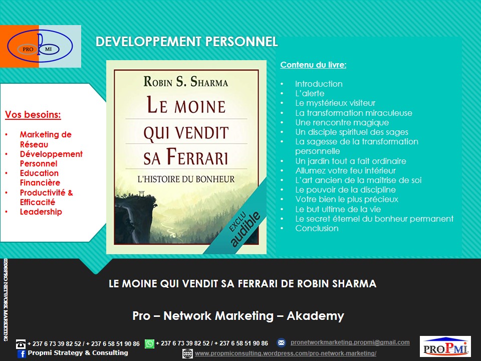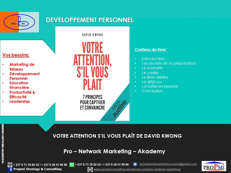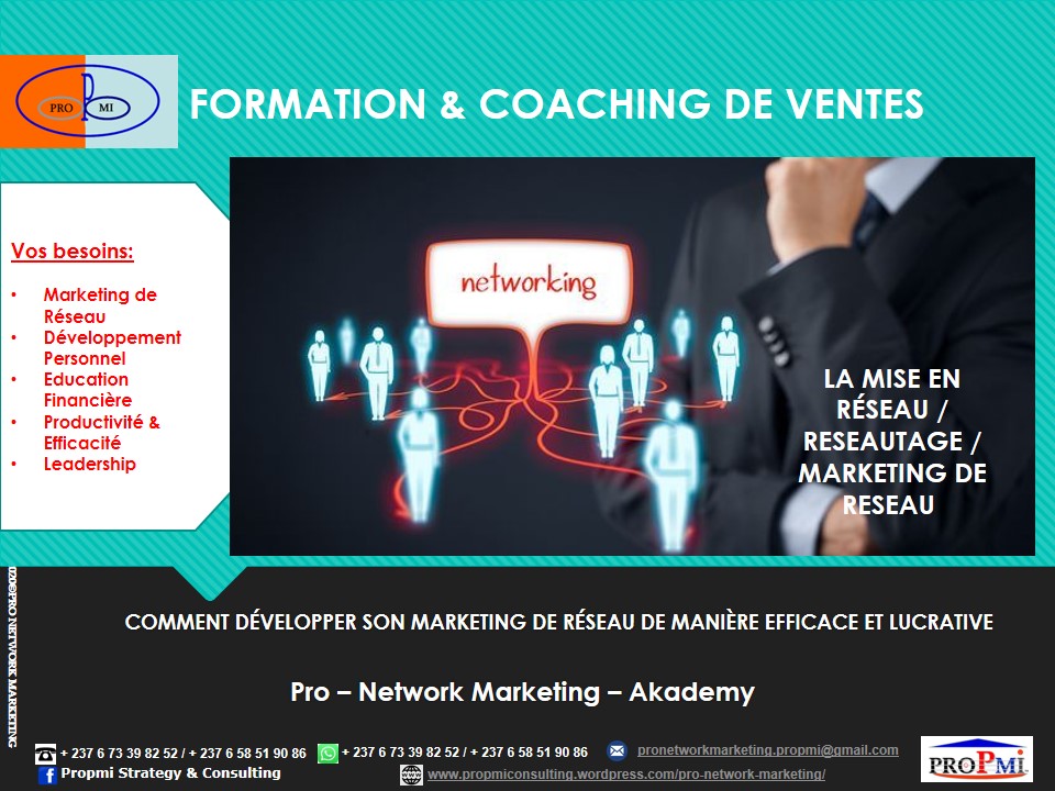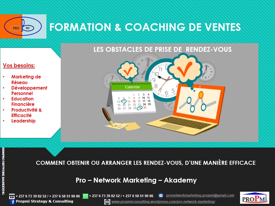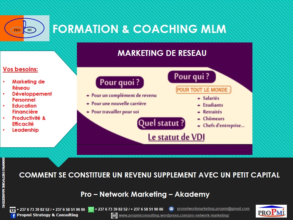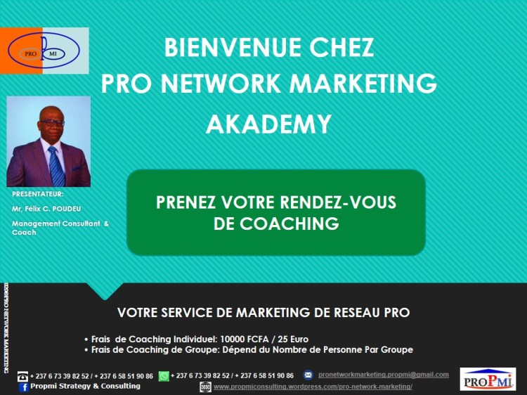 Si vous aussi vous voulez devenir un Professionnel du Marketing de Réseau, contactez-nous sur WhatsApp: (+237 6 73398252/658519086) ou par email: pronetworkmarketing.propmi(@)gmail.com ou prendre un rendez-vous en remplissant le formulaire de RDV.