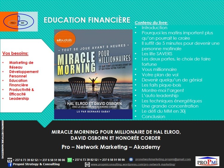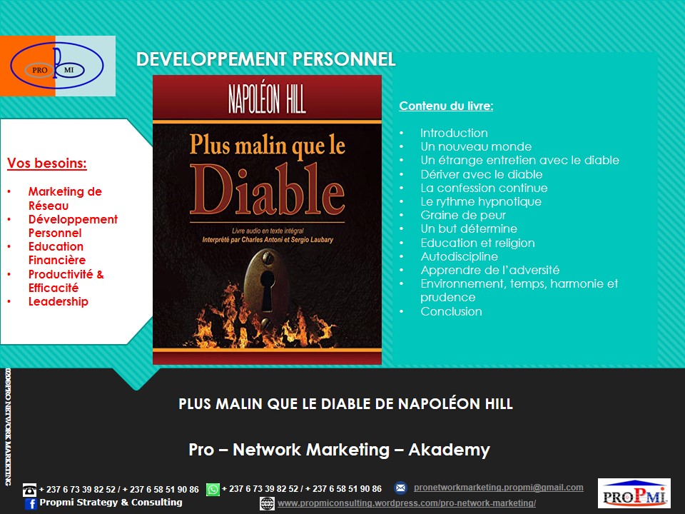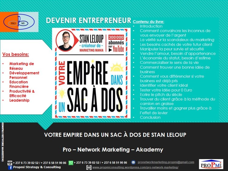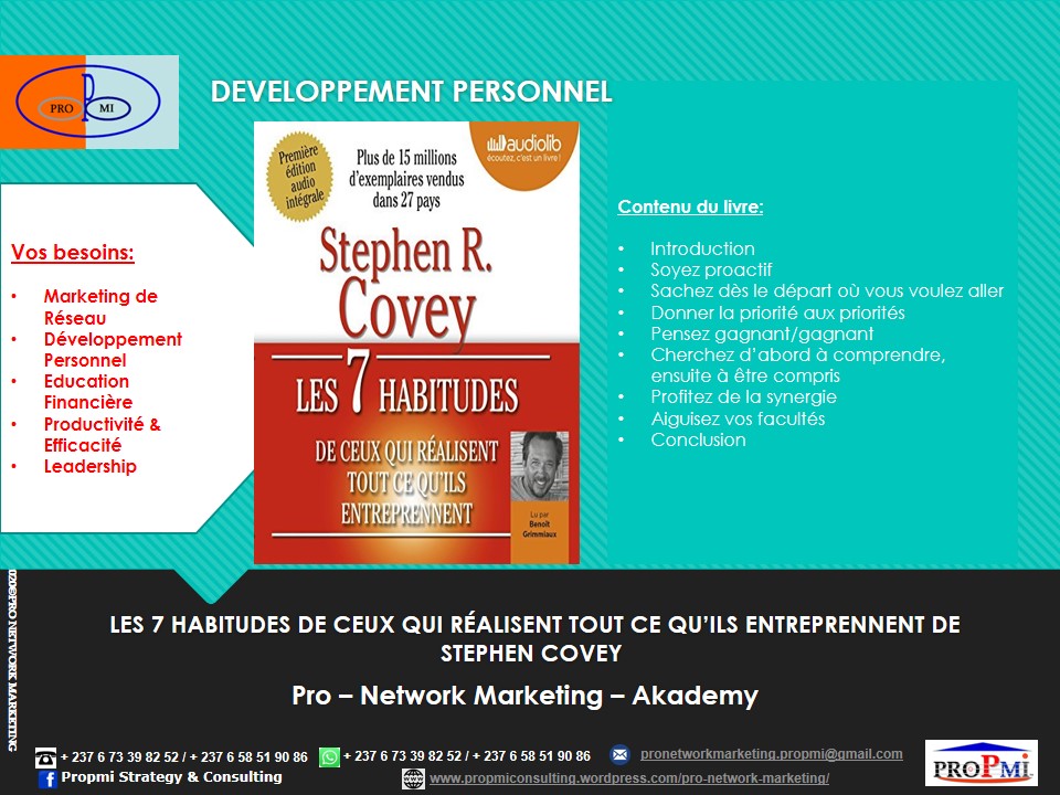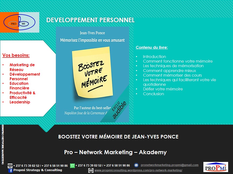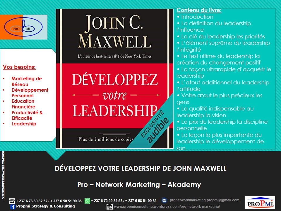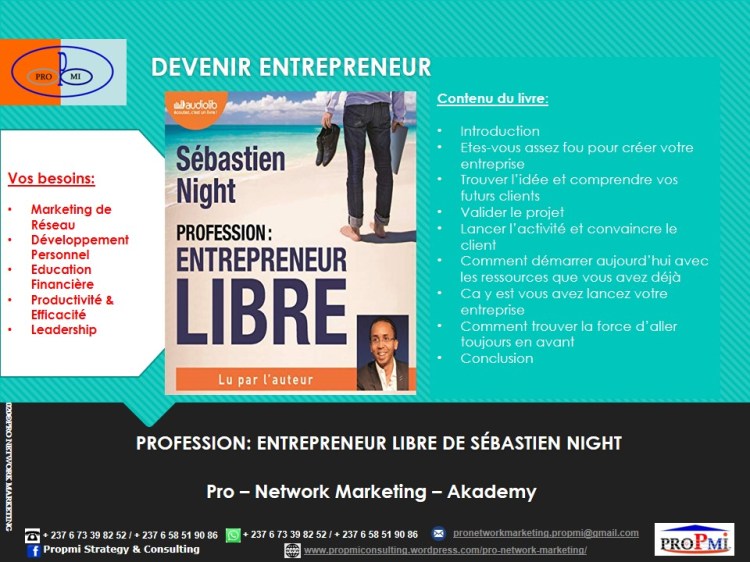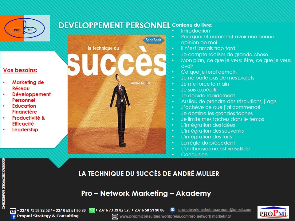 Si vous aussi vous voulez devenir un Professionnel du Marketing de Réseau, contactez-nous sur WhatsApp: (+237 6 73398252/658519086) ou par email: pronetworkmarketing.propmi(@)gmail.com ou prendre un rendez-vous en remplissant le formulaire de RDV.