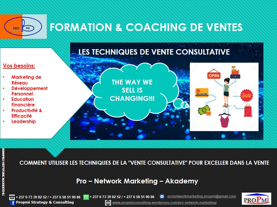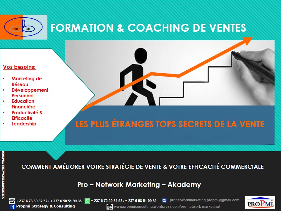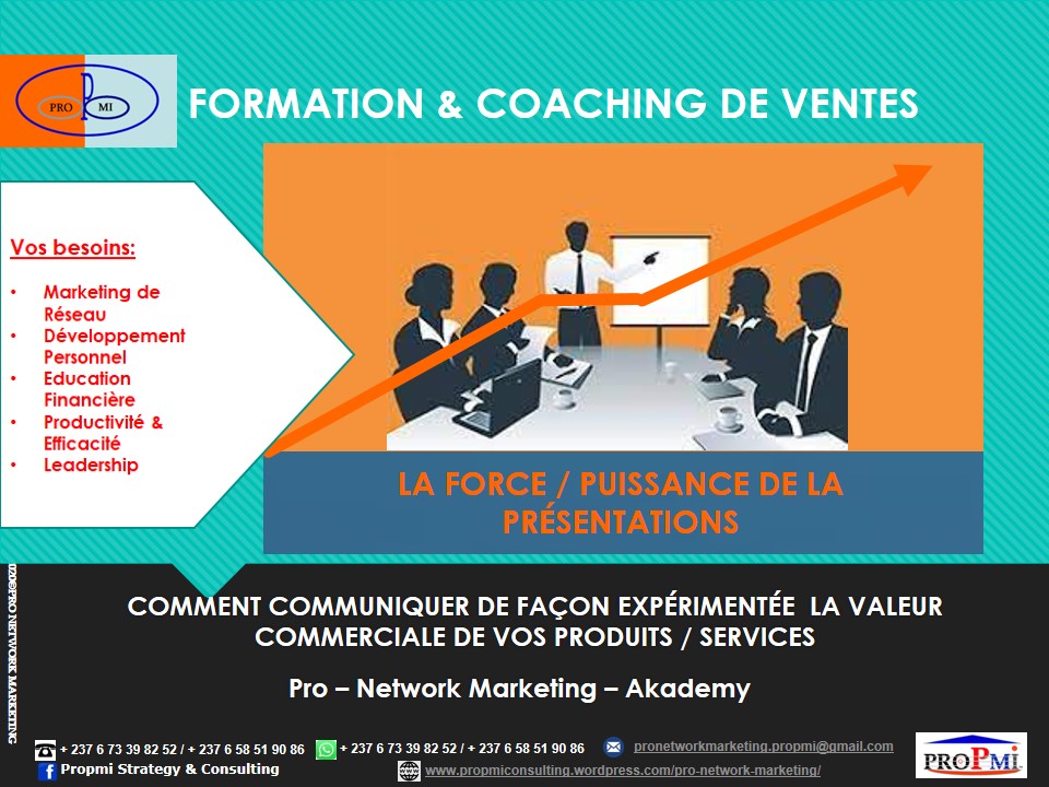 PROFITEZ DE NOTRE EXPERTISE & EXPERIENCE EN FORMATION & COACHING DE VENTES Êtes-vous PRÊT à Travailler Sur votre propre FORTUNE? FORMATION: COMMENT COMMENCER A TRAVAILLER SUR VOTRE PROPRE FORTUNE … Introduction: Développez votre Entreprise de Marketing de Réseau… Consiste à former et coacher les personnes sur « Comment travailler sur sa propre fortune ». Cette offre de…