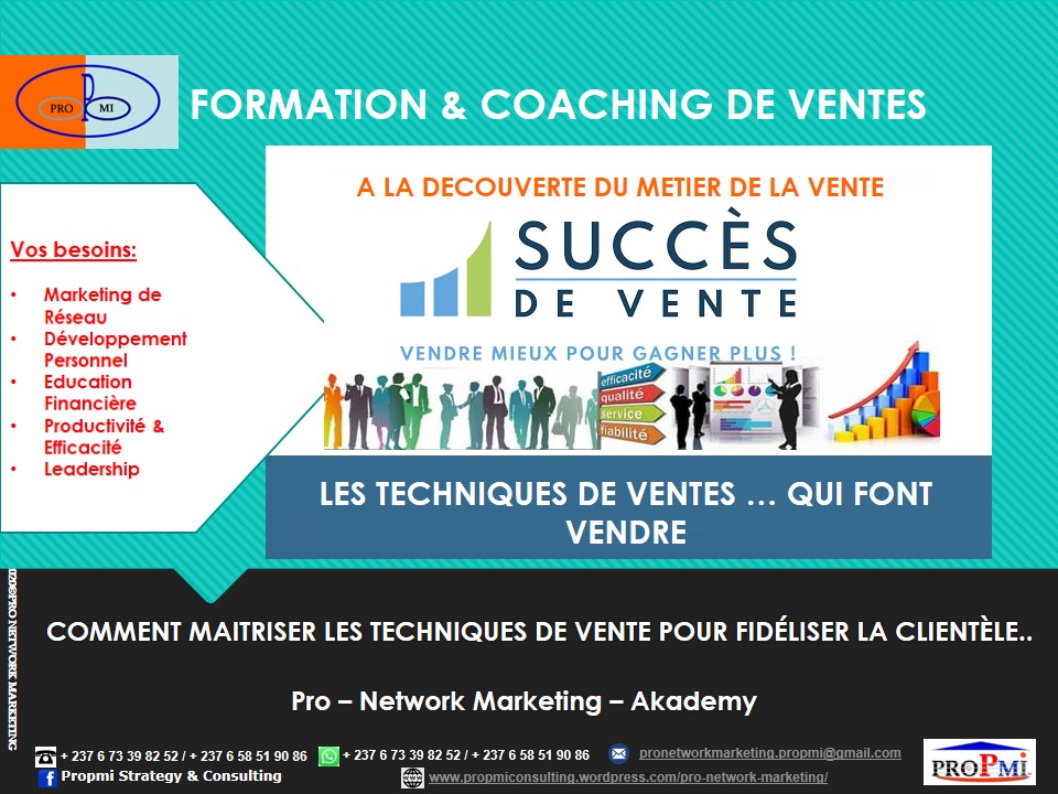 | Les résultats souhaités: | Notre objectif est de vous soutenir dans le développement de votre connaissance en vente et surtout vous donnez les outils nécessaires pour accomplissement de vos objectifs. • Préparer votre entretien de vente, • Maîtriser la visite et présentation commerciale, • Devenir un très bon négociateur, • Satisfaire et fidéliser vos clients, et • Convaincre ou persuader vos clients. Ce sont autant de compétences que vous pourrez développer et renforcer à l’occasion de cette formation en technique de vente. |