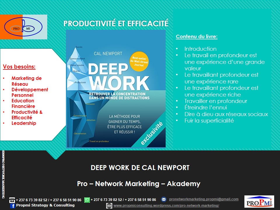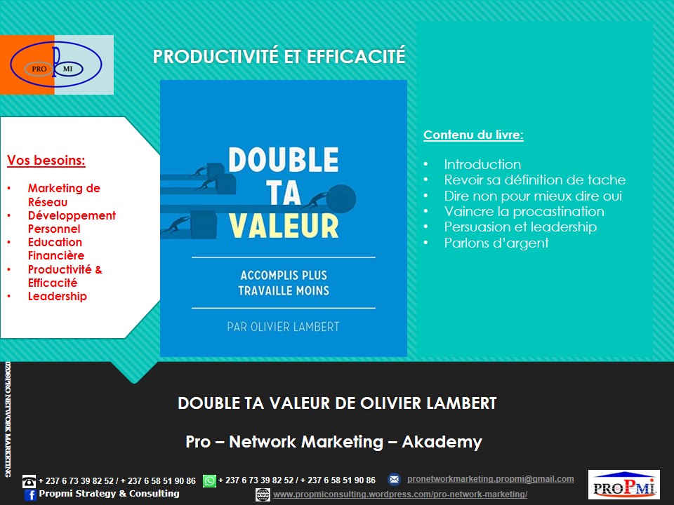 Si vous aussi vous voulez devenir un Professionnel du Marketing de Réseau, contactez-nous sur WhatsaApp: (+237 6 73398252/658519086) ou par email: pronetworkmarketing.propmi(@)gmail.com ou prendre un rendez-vous en remplissant le formulaire de RDV.